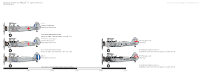 The Boeing-Stearman Model 75 was one of the most widely produced American trainer biplanes of the 1930s and 1940s, with almost 11,000 machines being built and the type being exported to various countries around the globe, among them, the following ones: